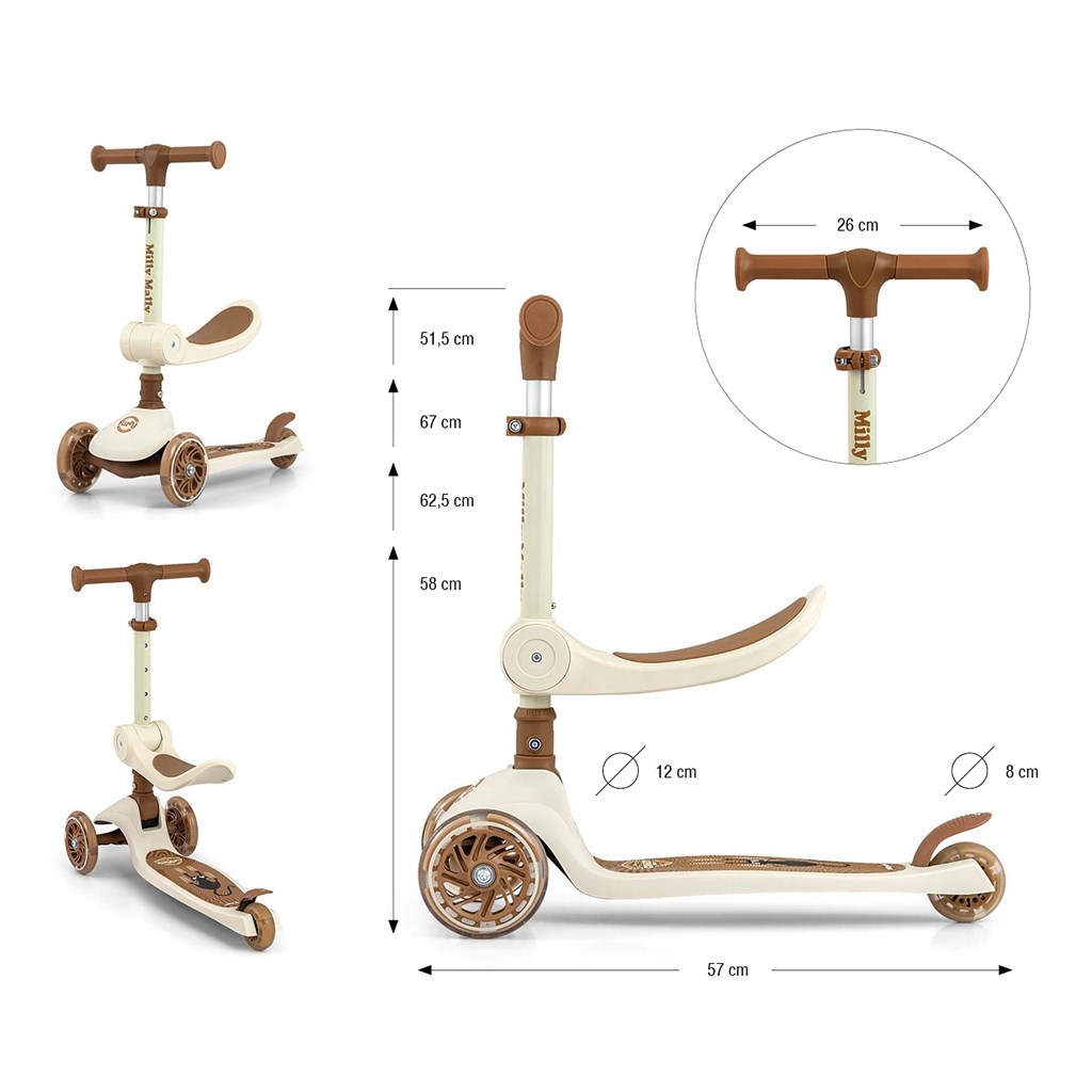 The FUZZY kids scooter with seat is a perfect choice for toddlers learning balance and movement. It combines a ride-on and a scooter, supporting natural development, coordination, and stability. Its safe three-wheel design and playful look make it a favorite for both kids and parents.