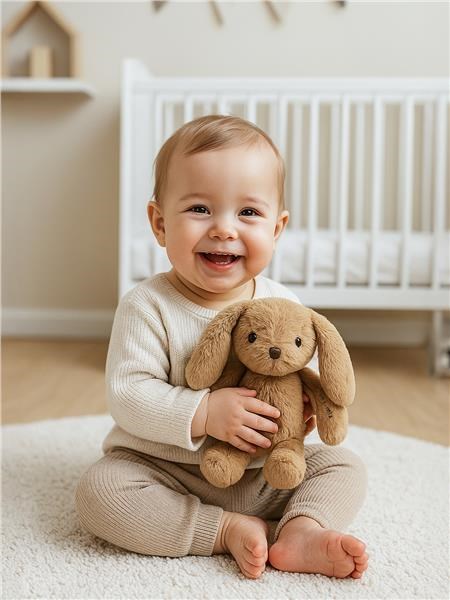 The bunny measures 25 × 20 × 8 cm and is made from soft, pleasant-to-touch and safe materials, making it perfect for cuddling and play. The blanket wraps your little one in warmth, and the booties protect tiny feet, providing comfort and ease.