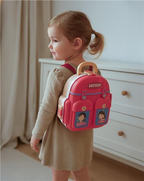 Children's beauty salon in a backpack contains mock-ups of beauty products, a mirror and much more. This backpack is sure to delight all little princesses.