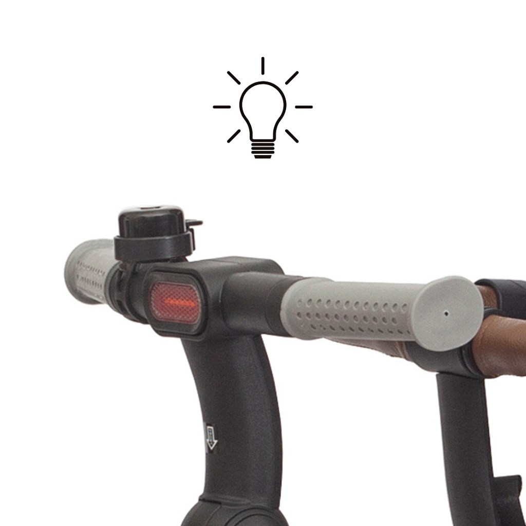 Equipped with an adjustable handle, freewheel function, brake, safety belts with protectors and a comfortable three-position backrest, Twinkle guarantees complete control and comfort for both child and parent. Its lightweight but durable steel frame, foam-filled wheels with ball bearings, folding design and practical features such as a mesh canopy, LED light, drink holder and two storage boxes make it the perfect choice for any occasion - in the city, on a walk or on a trip. After removing the handle, rails and canopy, Twinkle can be used as a classic tricycle.