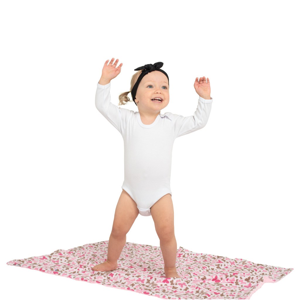 Luxury baby cotton bodysuit, suitable for babies from birth. Soft, smooth cotton does not irritate the baby's skin. The bodysuit is made of pleasant and high quality material, in which your baby will feel comfortable. The stud fastening on the shoulder and between the legs makes dressing and changing easier. The body is an important piece of clothing for babies. With any movement, the baby's buttocks are always covered. Give your baby comfort and quality when wearing it. Composition 100% cotton. Dimensions: circumference around the chest approx. 55 cm, sleeve length approx. 28 cm, total length approx. 46 cm.