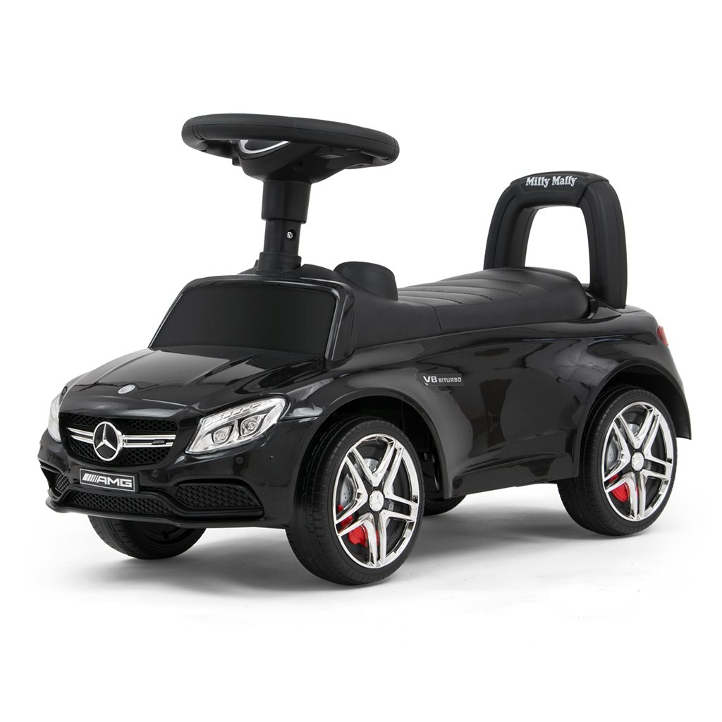 The Mercedes Benz AMG C63 Coupe is made of high quality plastic material. Its sporty appearance will attract the attention of not only every child, but also parents. Your little racer will feel like in a real Mercedes. The scooter helps to develop your child's motor skills and will guarantee him a lot of fun and entertainment. The ride has a fancy horn on the steering wheel and two buttons with melodies. The scooter is designed both for the smallest children who can sit and for children who have already learned to walk. Children will have a lot of fun with the car because it has the inimitable look of a real Mercedes, a comfortable wide seat with storage space, a steering wheel and high-quality plastic wheels. Batteries not included (2x AA 1.5V).