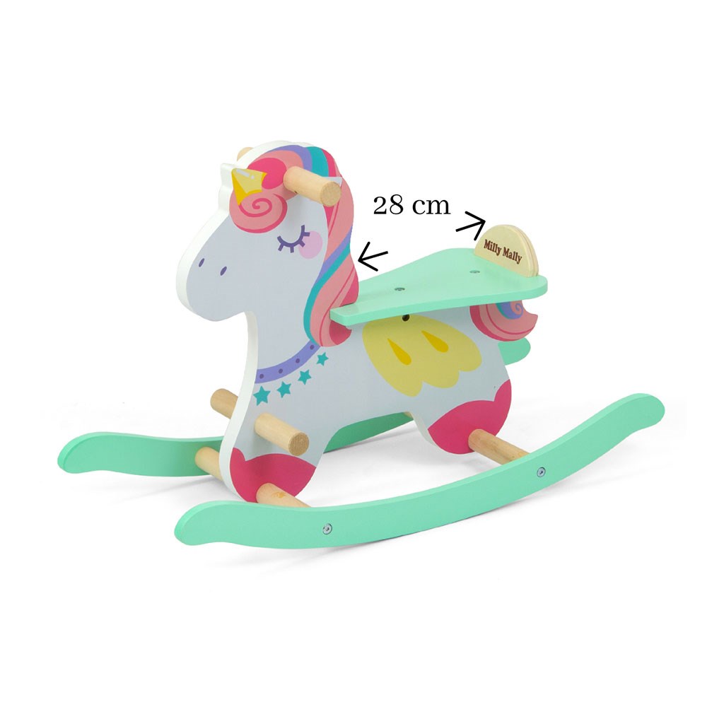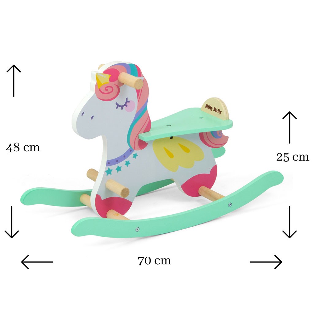 Milly Mally Lucky 18 Unicorn wooden rocking horse with backrest