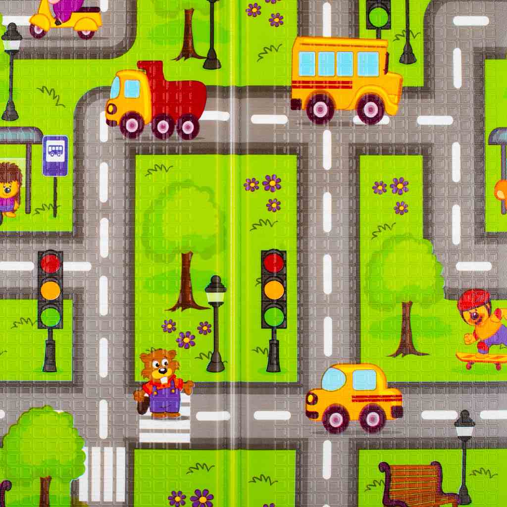 The PlayTo multifunctional foam play mat has versatile uses for the whole family. It is an indispensable helper not only for playing, but also for light exercise, first attempts at sitting training or developing the motor skills of your little ones. Thanks to the double-sided motif, you can also use it as a mat for home exercises, a tent mat, a folding lounger for the swimming pool, garden, picnic in nature or a beach mat. Its advantages will also be appreciated by kindergartens, schools, preschools and children's centres as a supportive aid for safe play and various physical activities. The soft and very pleasant to the touch material from which the mat is made provides excellent sound and heat insulation from cold floors, protects against dust mites in the carpet or carpet burn. The specially designed non-slip surface will protect your little one from hard falls. By using the mat, floor coverings or carpets are also protected from stains and damage.