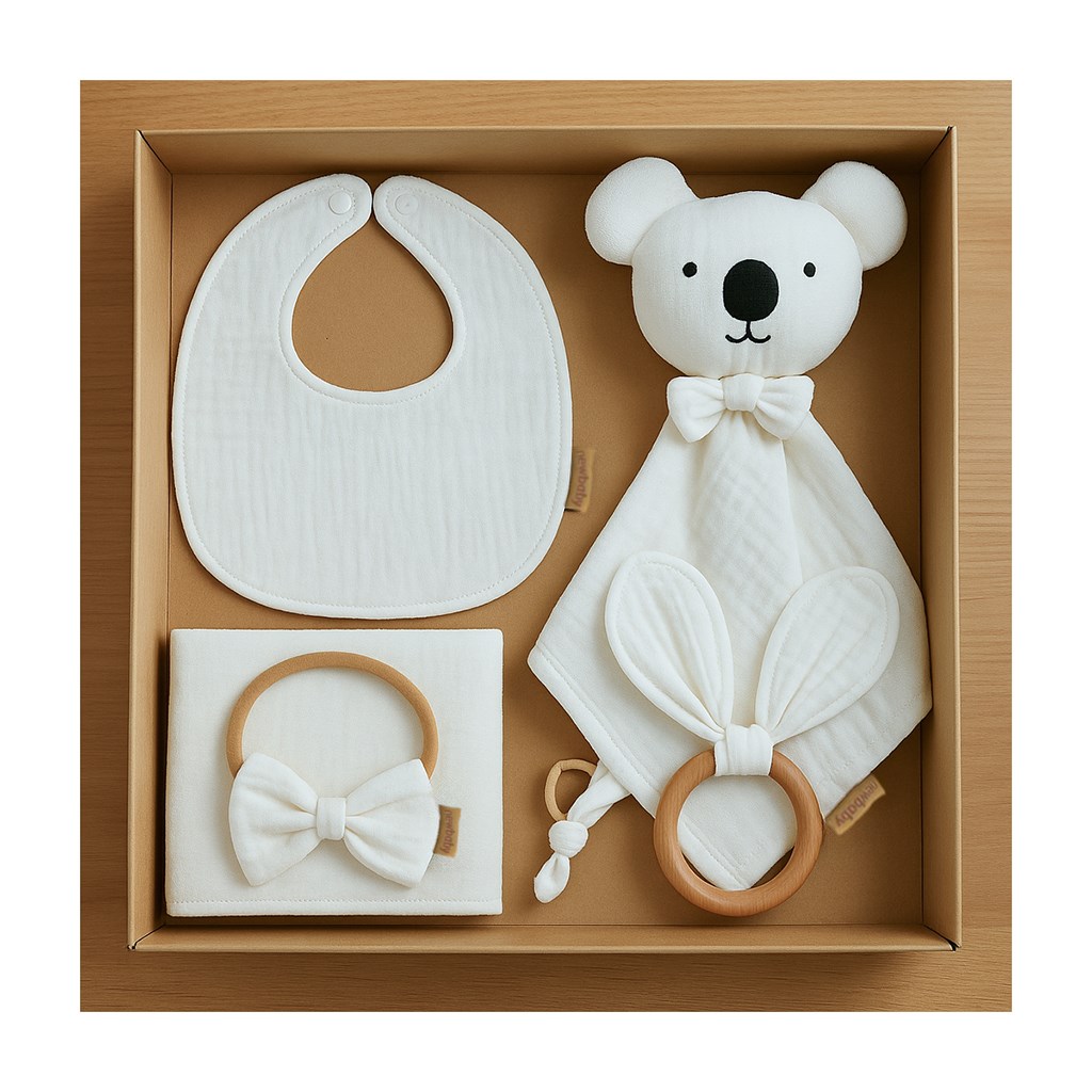 The muslin “Koala” plush toy is an ideal companion for the baby from day one. Made with extremely soft muslin fabric, it offers a sense of security, helps with sleep, and becomes a faithful bedtime friend. Its minimalist design and subtle color give it a special charm. It pairs perfectly with other muslin products from New Baby, forming a beautiful gift set.