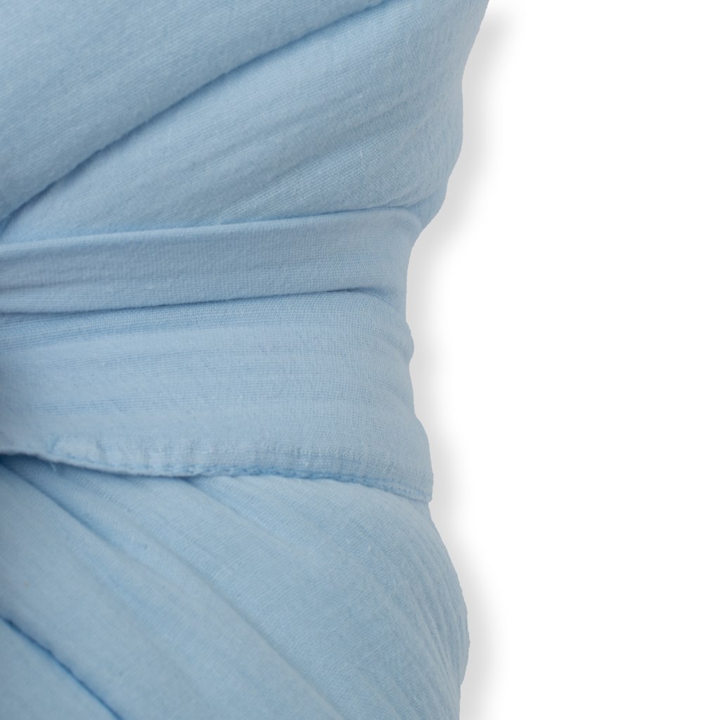 Muslin is one of the purest, simplest and finest fabrics in the world. And what makes it so special? First of all, its breathability. The lightweight structure allows muslin to ""breathe"" and ensures sufficient air circulation, reducing the risk of overheating. The muslin is very durable, so much so that it can withstand repeated washings without problems and becomes even lighter and softer over time.