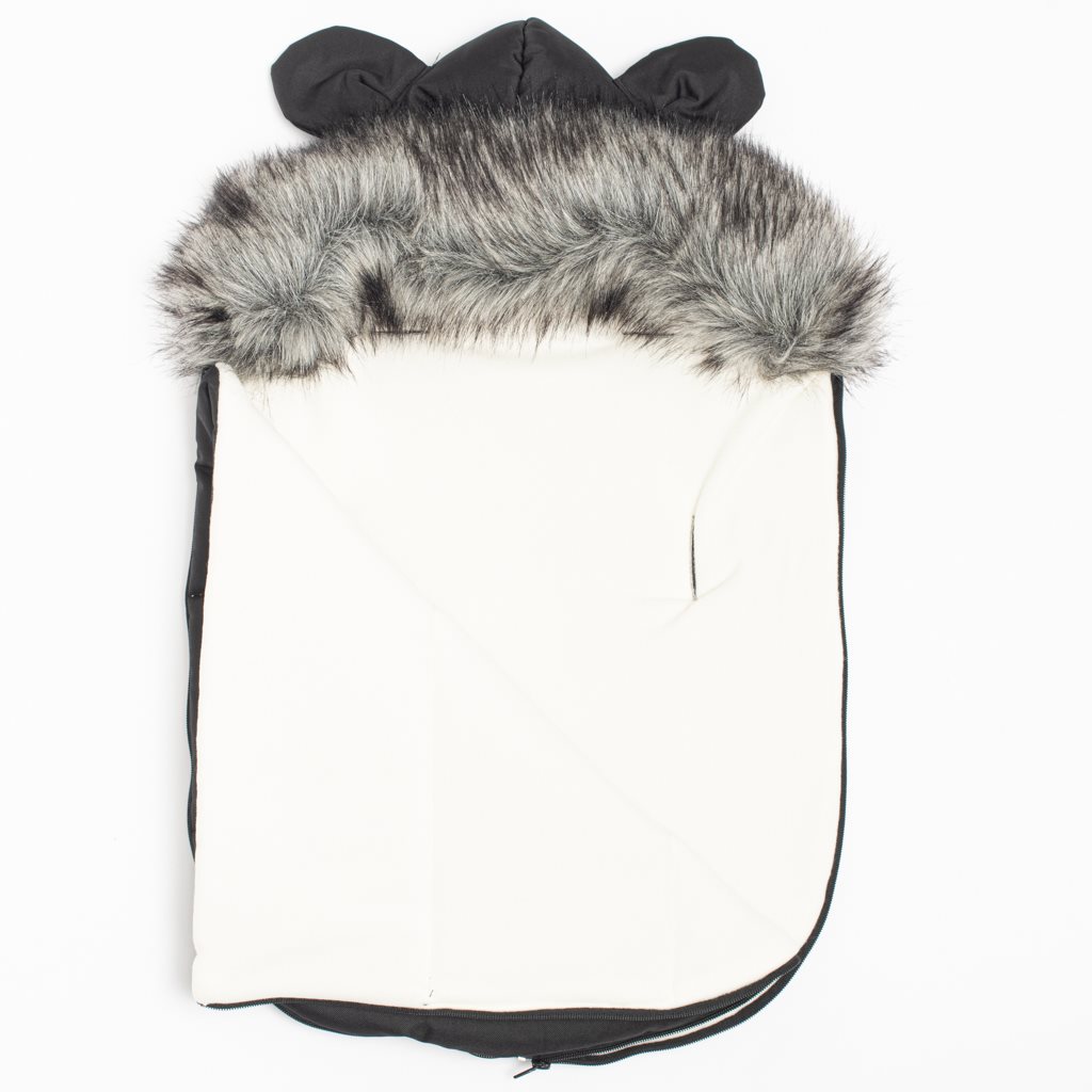 The multifunctional New Baby winter hooded baby fleece with ears with fleece inner layer is ideal not only for a deep stroller or a stick, but thanks to the pre-sewn holes for five-point seat belt fastening, you can use it in a car seat or sled. The inside of the footmuff is made of a soft and comfortable fleece material. This material helps to maintain a stable temperature of the baby's body, but also prevents him from overheating. There is a layer of warm material between the fleece and the outer fabric, which guarantees the baby's comfort and warmth during cold and frosty days. The top of the fleece can easily be completely unzipped to create a very practical pad. These handy zippers on the sides of the fleece make it even easier to handle baby. The fur can be unzipped. Fastened with studs.