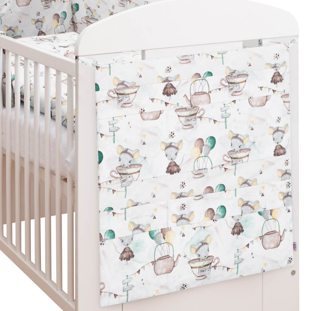 Modern and practical New Baby Mouse Mia crib mattress cover. It is made of soft, pleasant material. 100% cotton. 100% polyester. Size: approx. 180x32 cm.