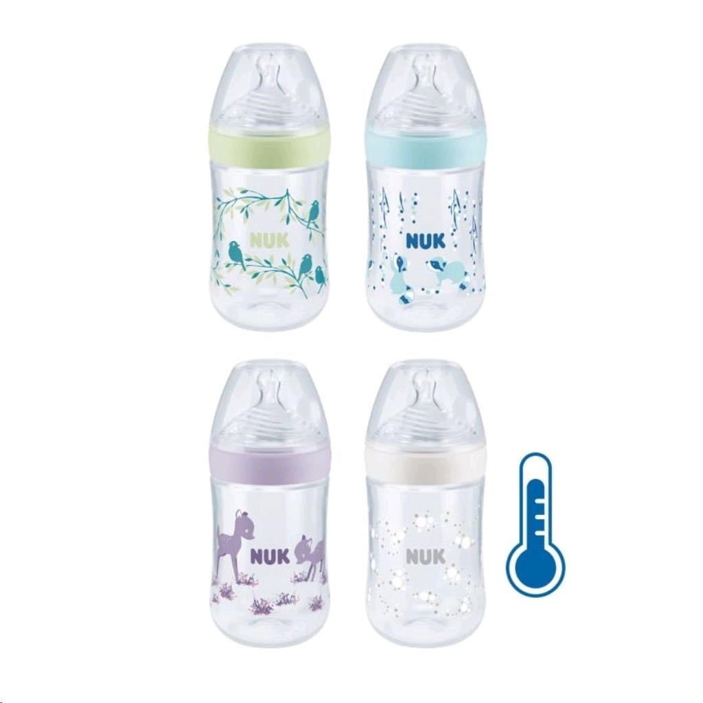Nuk Nature Sense M baby bottle, 260 ml with temperature control. The built-in temperature control indicator changes colour if the contents of the bottle are too hot. The blue colour of the indicator changes to white. The bottle makes it easier for babies to transition from breastfeeding or feeding to drinking independently. The Nature Sense baby bottle has a silicone teat that is most similar in shape and softness to the mother's breast. The bottle is as natural as possible. It has an extra wide neck for easy filling and cleaning, a protective leak-proof cap, and a soft and flexible teat that is heat and wear resistant, odour and taste free. The bottle is made of high quality, BPA-free polypropylene material. The special shape typical of NUK orthodontic anticolic teats is modelled on the mother's nipple when breastfeeding. It leaves enough space for natural sucking movements of the tongue and jaw. The improved Anti Colic Air System ensures a natural flow of milk to ensure baby drinks relaxed without swallowing air. The bottle is recommended by midwives and pediatricians. Features of the teat: