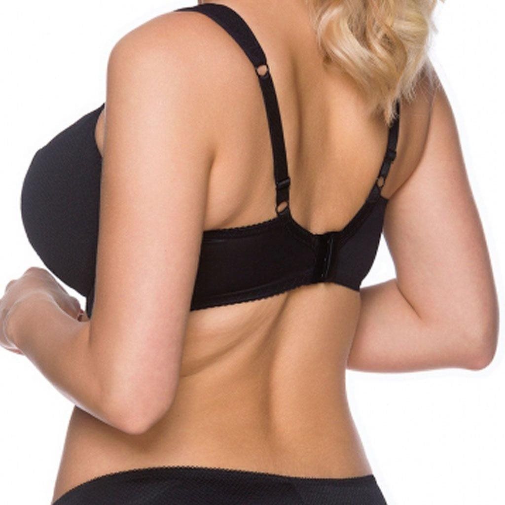 Semi-reinforced nursing bra New Baby Ella. Comfortable, modern and high quality maternity bra, designed for larger breasts. Another advantage is the thicker, adjustable straps, ensuring maximum comfort which makes you more comfortable with breastfeeding. Among other things, the bra is designed for breastfeeding women, who will also appreciate the sexy look. It perfectly holds the breasts and gives them a beautiful shape. The cups are detachable at the top with a click-clack clasp, which allows you to breastfeed without unfastening or removing the whole bra. The inside of the cups are covered in 100% cotton with an antibacterial finish. The bra has adjustable straps. The fastening is on three hooks with three positions of withdrawal. Ideal nursing bra for discreet feeding of the baby. 70% polyamide, 20% elastane, 10% cotton.