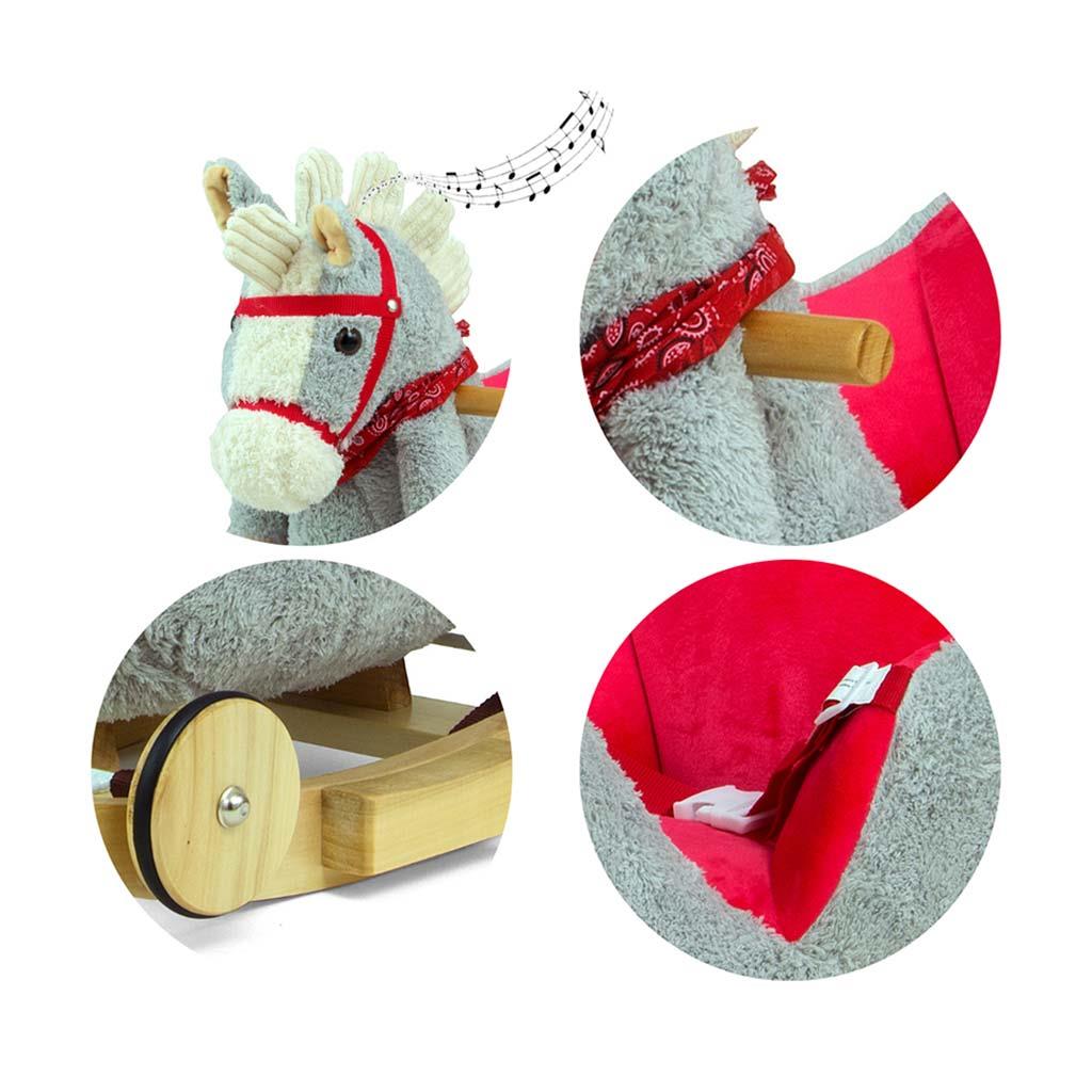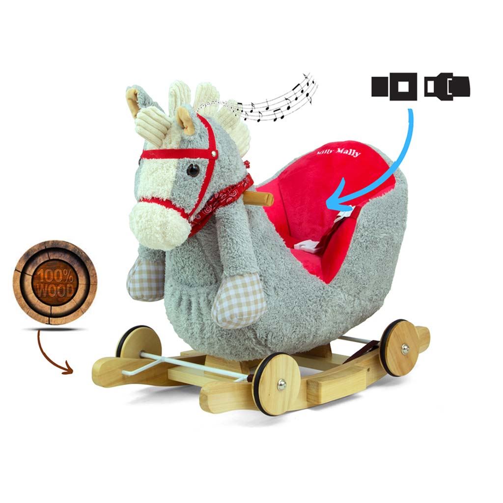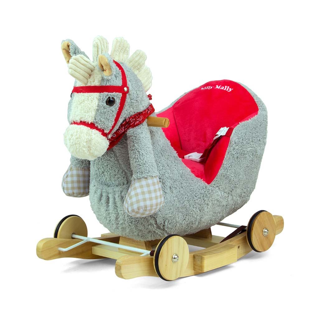 Rocking horse with melody and wheels Milly Mally Polly grey and red