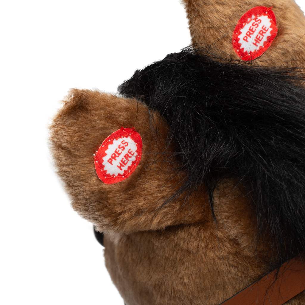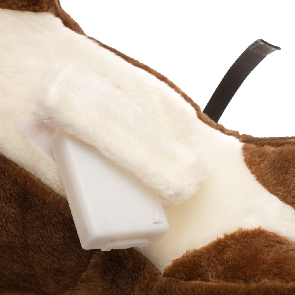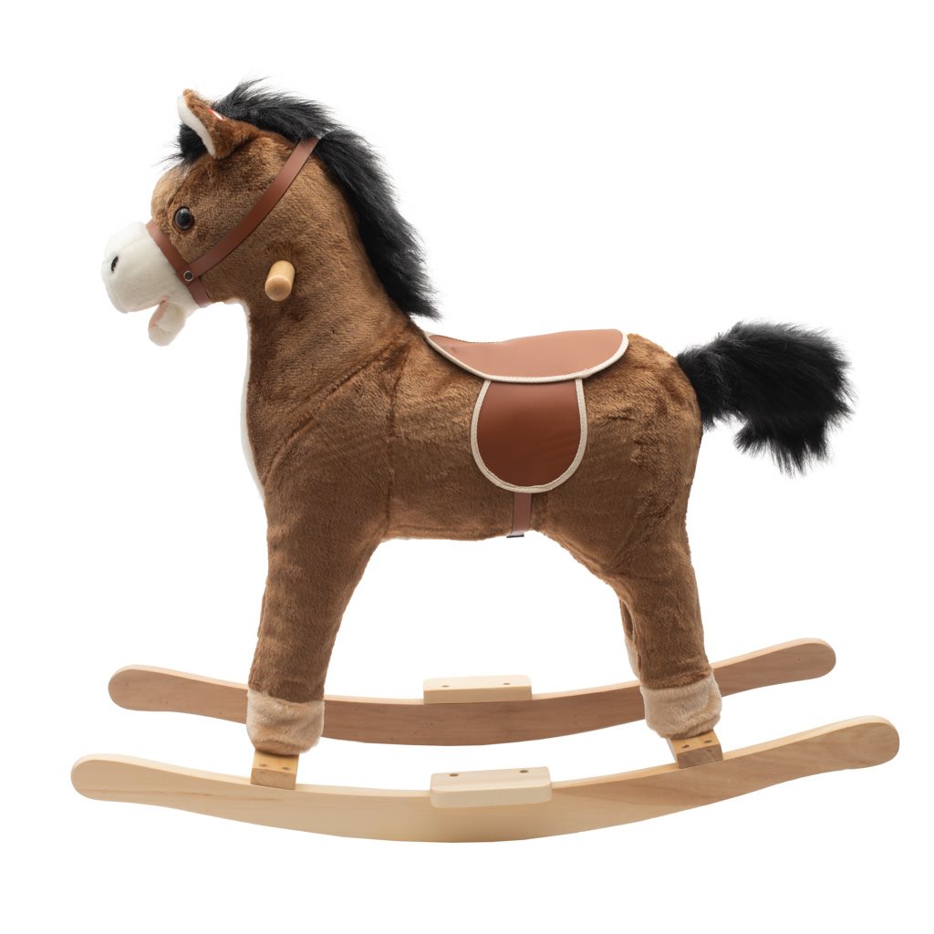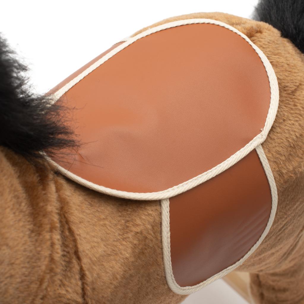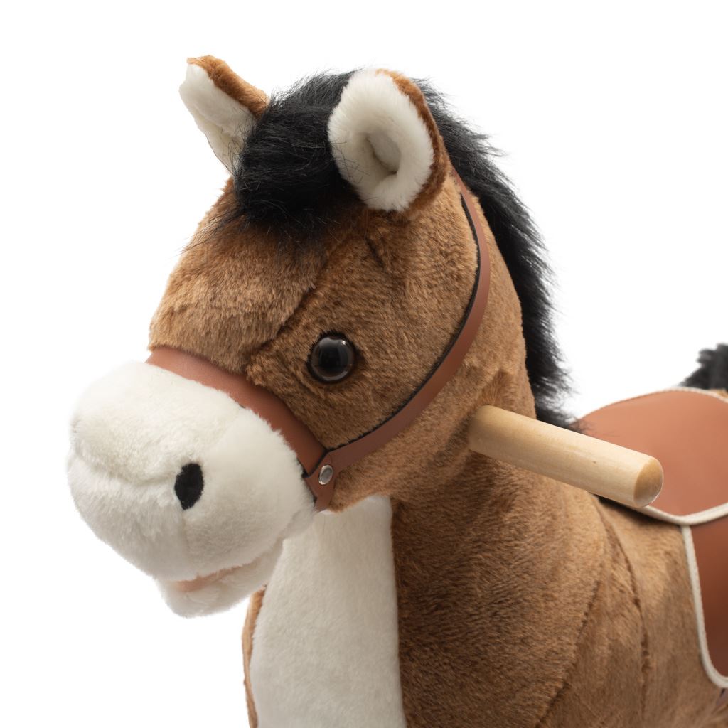 The beautiful PlayTo rocking horse has been designed for children who love rocking and adventure. It is made of soft and very pleasant to the touch plush material. When you press the tabs, the horse moves its mouth, neighs happily or plays cheerful music. The batteries are inserted into a pouch located on the tummy. The toy helps the child to develop coordination of movements and stimulates his imagination. The rocking bars can be easily unscrewed.