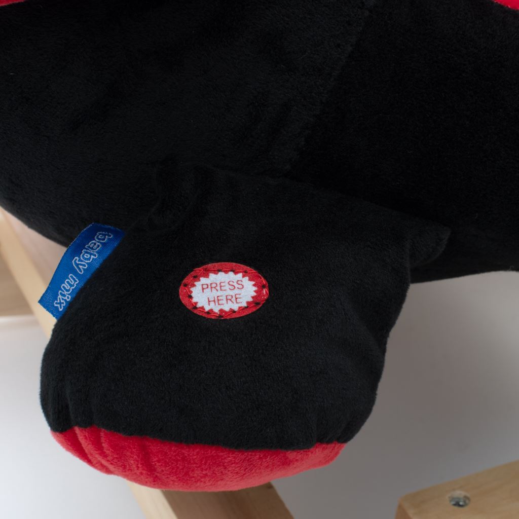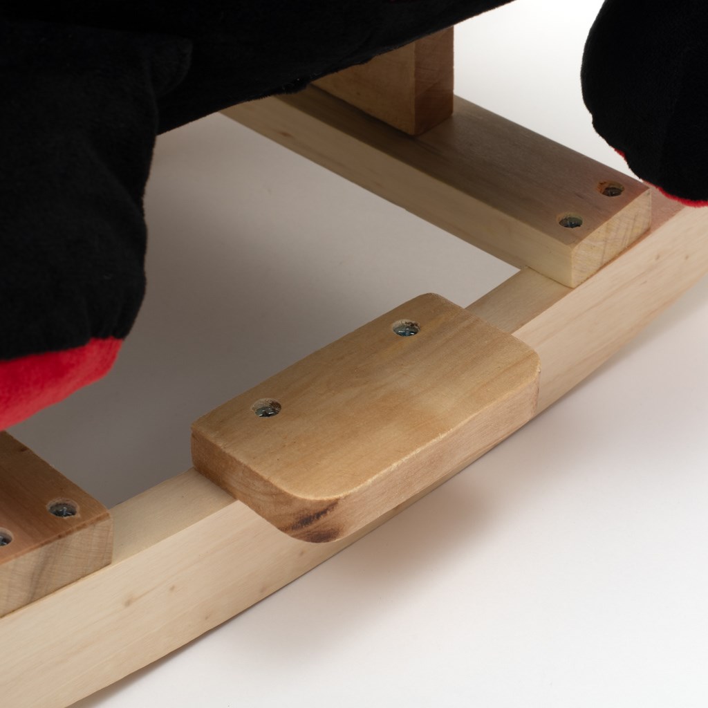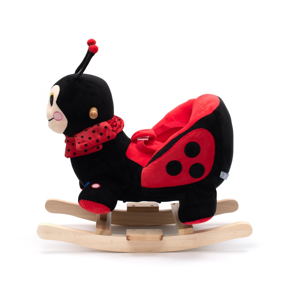 The Rocking Ladybug was designed for children who love adventure. The comfortable saddle, wooden handles and rocking rails provide comfort and safety while rocking your child carefree. The ladybug is decorated with a beautiful scarf. When you squeeze the paw, the toy starts singing a song. While rocking, the child stimulates the coordination of movements and develops the posture of balance. A pocket with a music module and batteries is hidden under the tummy. LR44 batteries are not included. It is made of soft plush material, the solid wooden rails or handles can be easily unscrewed.