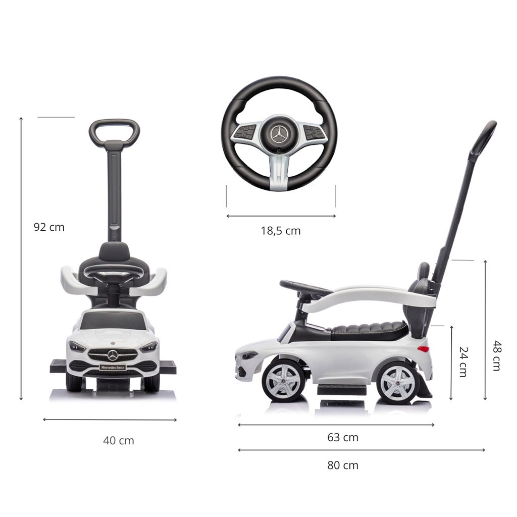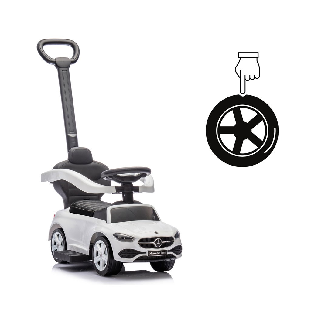 Mercedes C-Class Ride-On with Handle is an elegant and incredibly realistic toy that not only provides endless fun for children but also supports their development. Designed for the youngest car enthusiasts, this miniature Mercedes attracts attention with its appearance and attention to detail. Children can feel like real drivers, discovering the joy of their first "rides" and exploring their surroundings. This is a unique combination of classic style, comfort, and functionality that will quickly become any little one's favorite toy.