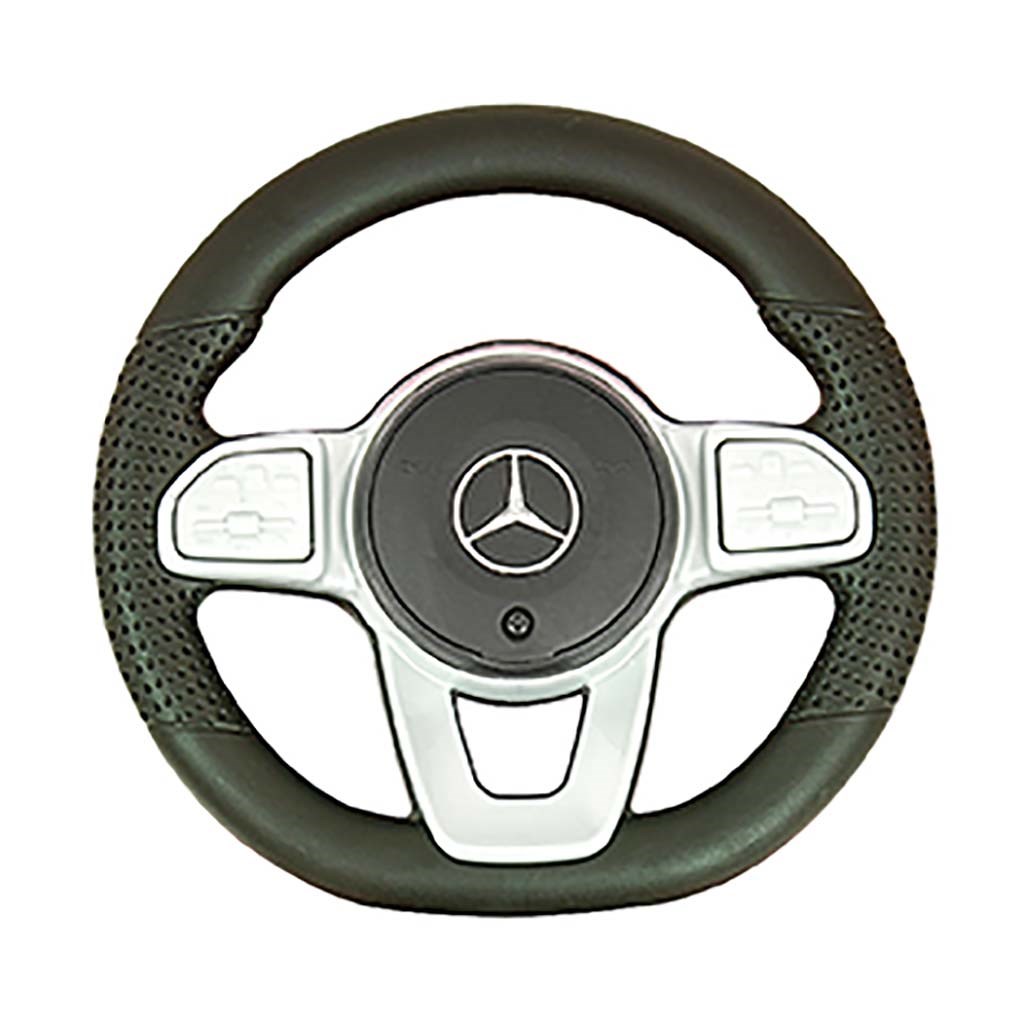 - Three-spoke steering wheel with MERCEDES logo, equipped with a horn with cheerful melodies and engine sound
