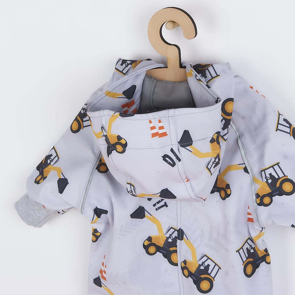 Imaginative softshell infant jumpsuit New Baby. The jumpsuit is fully printed with a baby pattern. Overalls are made in the Czech Republic from high quality softshell material. The material is smooth, elastic, soft and pleasant to the touch. It is also waterproof to a certain degree, does not soak up water and is resistant to pollution. The practical full-length zip fastening makes dressing and changing very easy. The full-length zip is lined with fabric, thus preventing wind from blowing onto the baby's skin. The jumpsuit has a practical hood, wider elasticated hems on the arms and legs and the entire inside is insulated with short cut fleece, which increases wearing comfort and provides warmth. The sleeves are sewn with reflective patches. The softshell jumpsuit is suitable as sportswear, it is both windproof and breathable. The baby will feel very comfortable and pleasant.