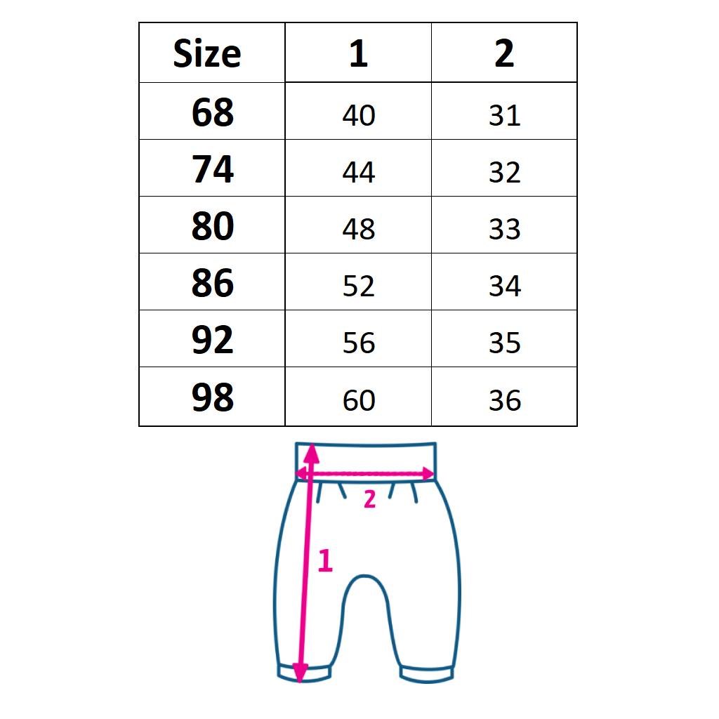 Imaginative softshell baby pants New Baby. The pants are made in the Czech Republic from high quality softshell material. The material is smooth, elastic, soft and pleasant to the touch. It is also waterproof to a certain degree, does not soak up water and is resistant to soiling. A wider elastic band is sewn in at the waist, which does not press on the baby's tummy. There are wider elasticated hems on the legs and a reflective patch is sewn into the top of the trousers. The smaller sizes are very practically tailored as they are wide enough at the hips for babies who wear nappies. The entire inside of the trousers is insulated with short-cut fleece, which increases wearing comfort and provides warmth. The softshell pants are suitable as sportswear, being both windproof and breathable. The baby will feel very comfortable and pleasant.