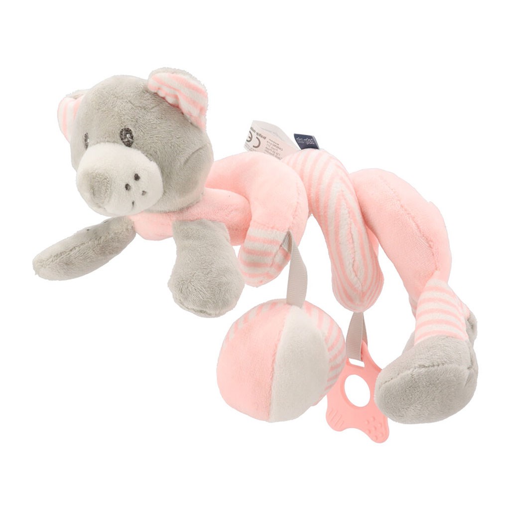 Beautiful plush crib toy Spiral Baby Mix in cheerful colors for your baby. The toy helps to develop the baby's sensory perception and stimulates his imagination. Thanks to its spiral shape, it can be attached to the cot, car seat or stroller. The toy with a sailor's head has a teether and a ball, one leg hides a squeaker and the other a rattle. Dimensions: length after stretching approx. 50 cm. Suitable for children from birth.