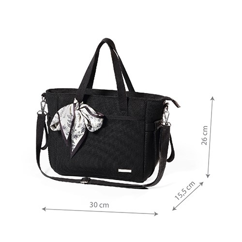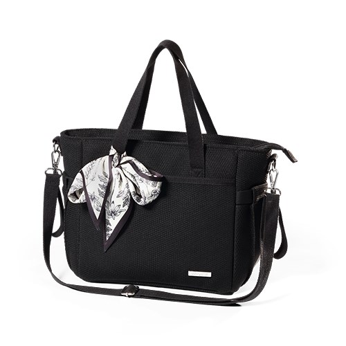 You can easily hang it on a stroller, carry it on your shoulder, or hold it in your hand – whatever is most convenient for you. A stylish scarf adds charm to the bag. You decide where to tie it.