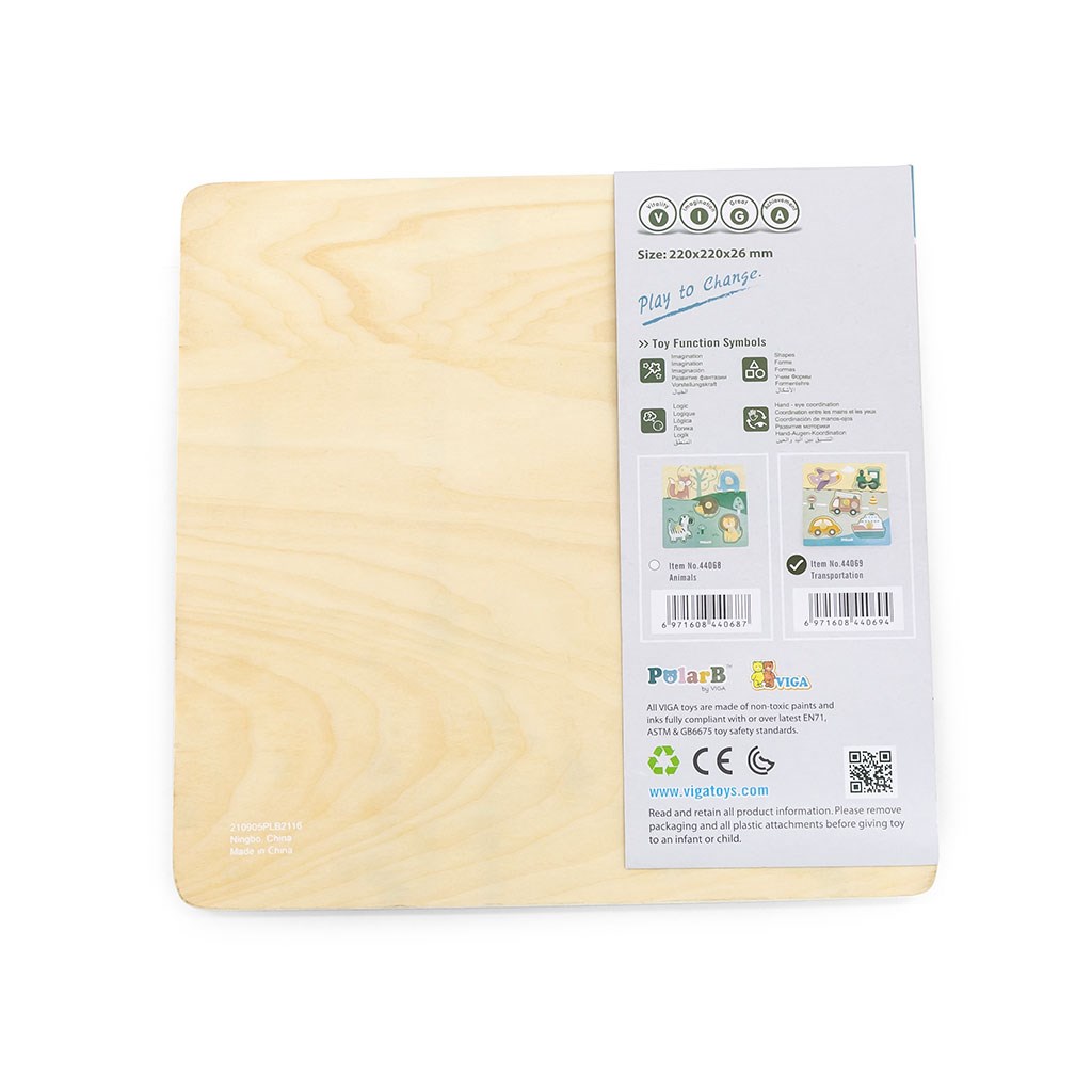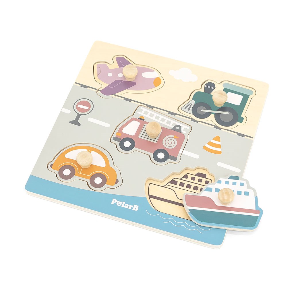 The puzzle's pieces are fitted with wooden pegs, making it easy for a toddler to grasp the puzzle in their hand and place it in the right place on the wooden base. This is one of the best ways to practice concentration and hand-eye coordination.