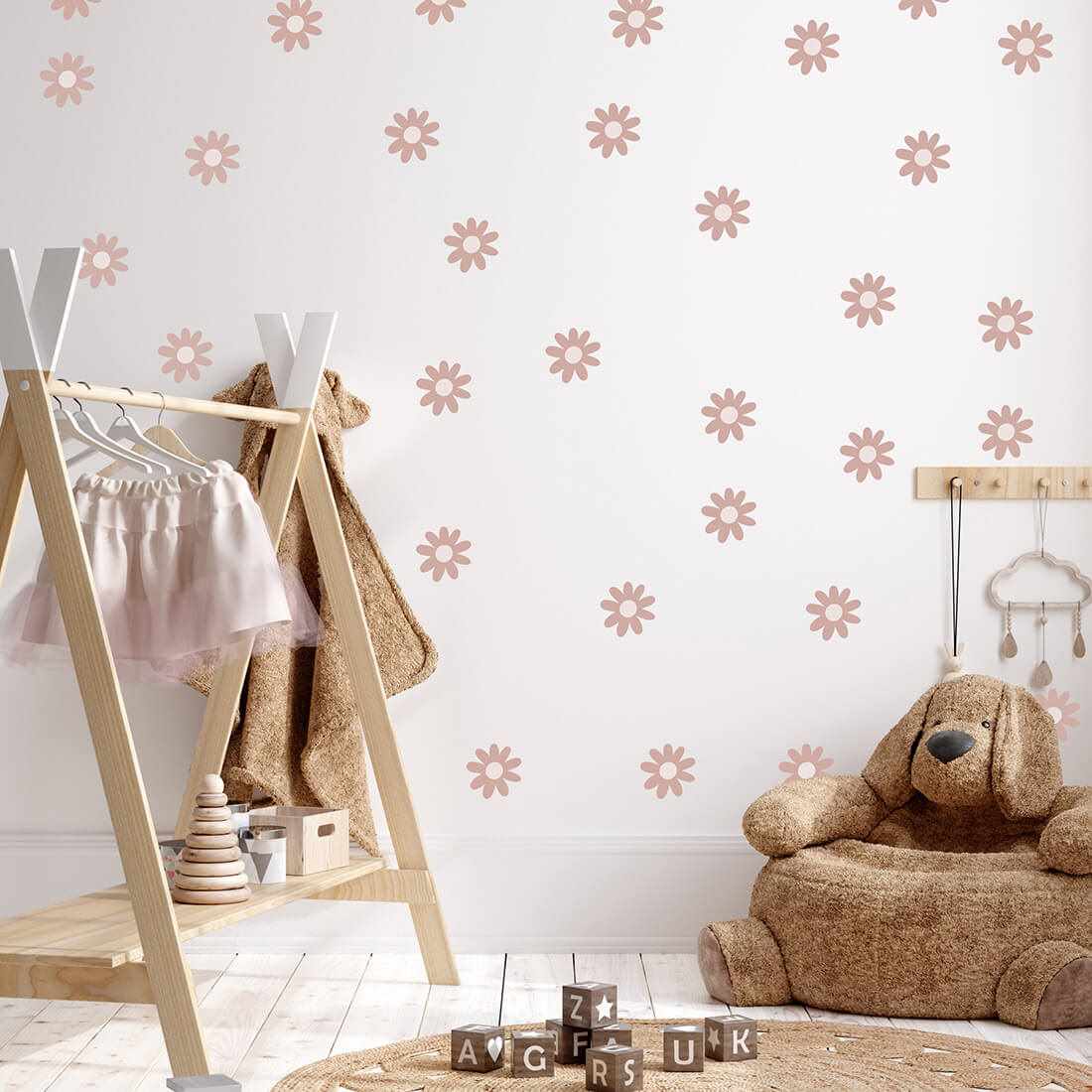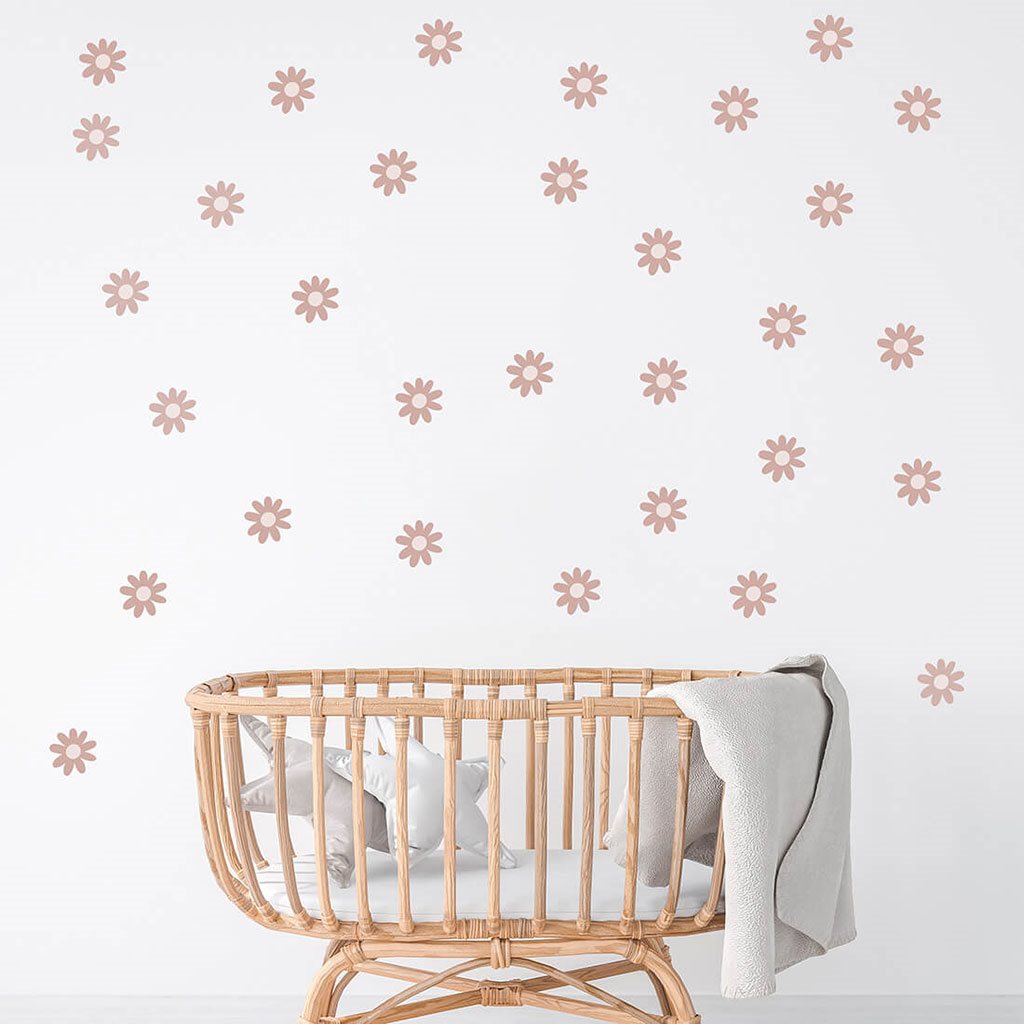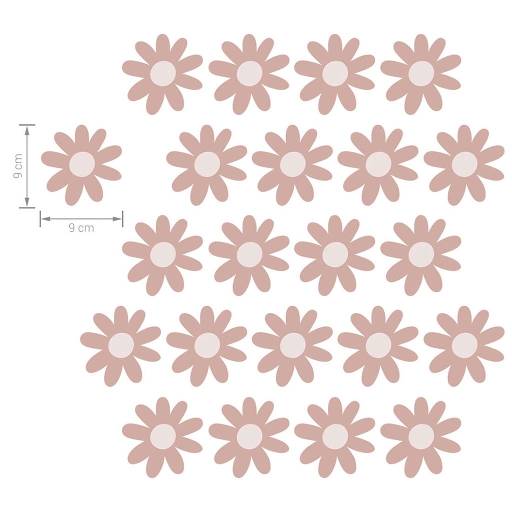 Beautiful wall sticker of daisies. Daisy stickers can be freely placed on the wall to create a wallpaper effect. They come in one shape and one size. Daisy stickers were created for all fans of delicate motifs and natural colours. Their unique shape makes them perfect for both Scandinavian and boho styles. The sticker is secured with a special matt laminate, which protects it from scratches during everyday use and also makes it easier to stick - the film is thicker and easier to transfer to the wall. If you're looking for the perfect way to brighten up your child's room, our wall stickers are the right choice. Order them today and make your child happy.