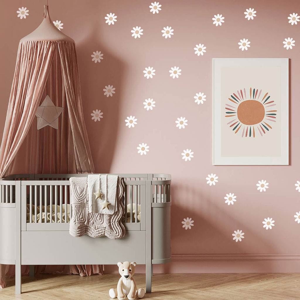 Beautiful wall sticker of daisies. Daisy stickers can be freely placed on the wall to create a wallpaper effect. They come in one shape and one size. Daisy stickers were created for all fans of delicate motifs and natural colours. Their unique shape makes them perfect for both Scandinavian and boho styles. The sticker is secured with a special matt laminate, which protects it from scratches during everyday use and also makes it easier to stick - the film is thicker and easier to transfer to the wall. If you're looking for the perfect way to brighten up your child's room, our wall stickers are the right choice. Order them today and make your child happy.
