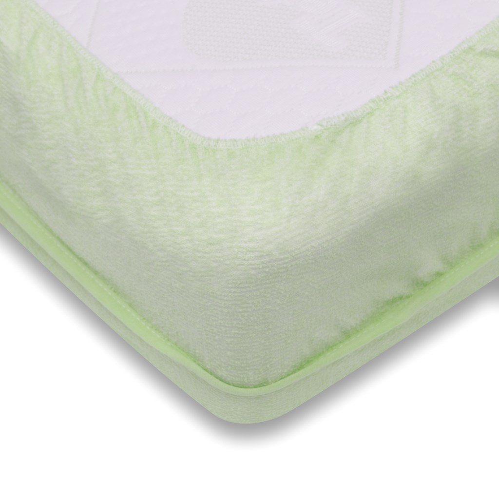 Terrycloth sheet with waterproof backing for children. Protects the mattress from soiling. The top side is made of terry material, underneath there is a soft foil cover that does not rustle like plastic. The sheet fits perfectly to the mattress without unnecessary creases. The elastic sewn around the perimeter makes it easier to adjust to the mattress. Size 60x120 cm.