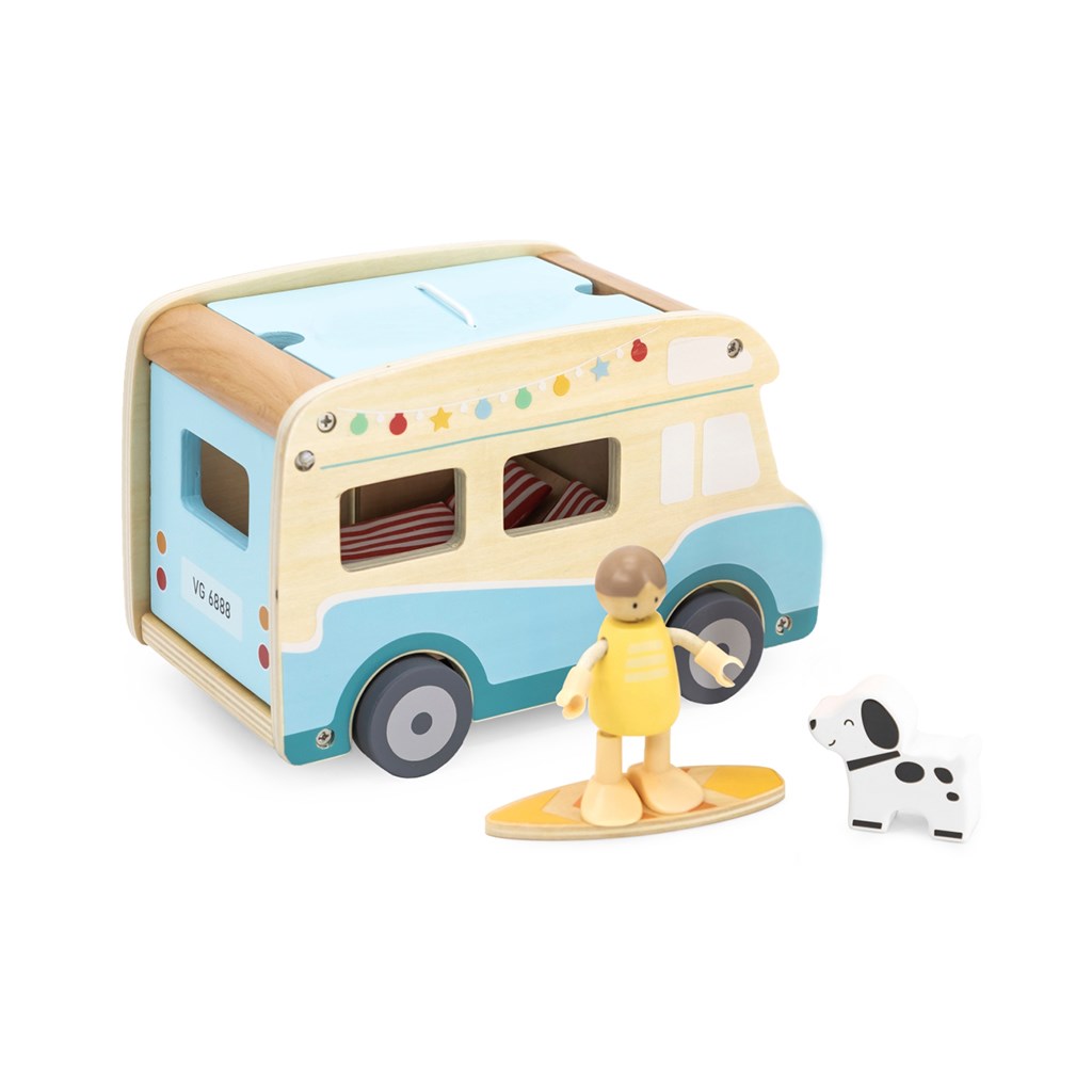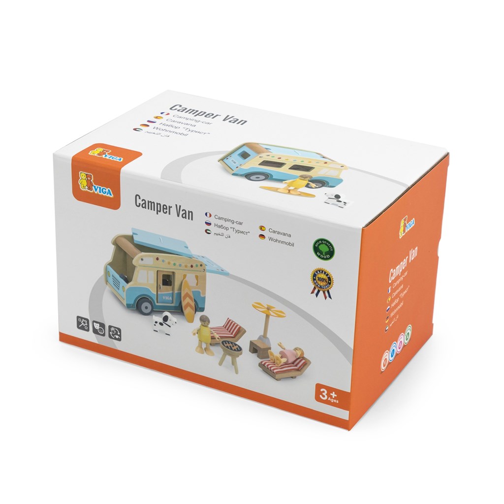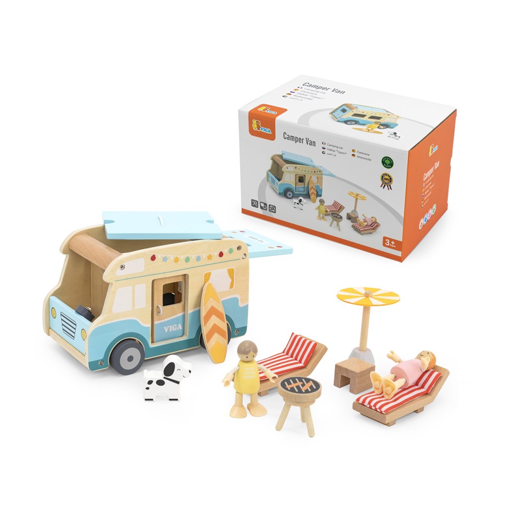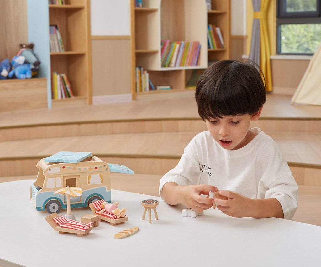Imagination development — the camper with accessories allows children to create creative scenarios like holiday trips, beach days, or outdoor cooking