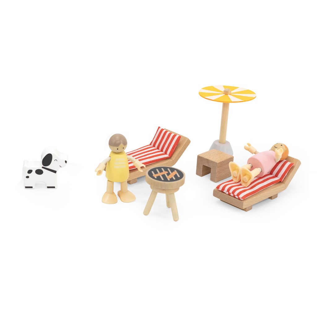 Multifunctionality — the set includes numerous accessories (dolls, chairs, grill, umbrella, puppy, etc.) that offer varied play possibilities and engage the child for hours