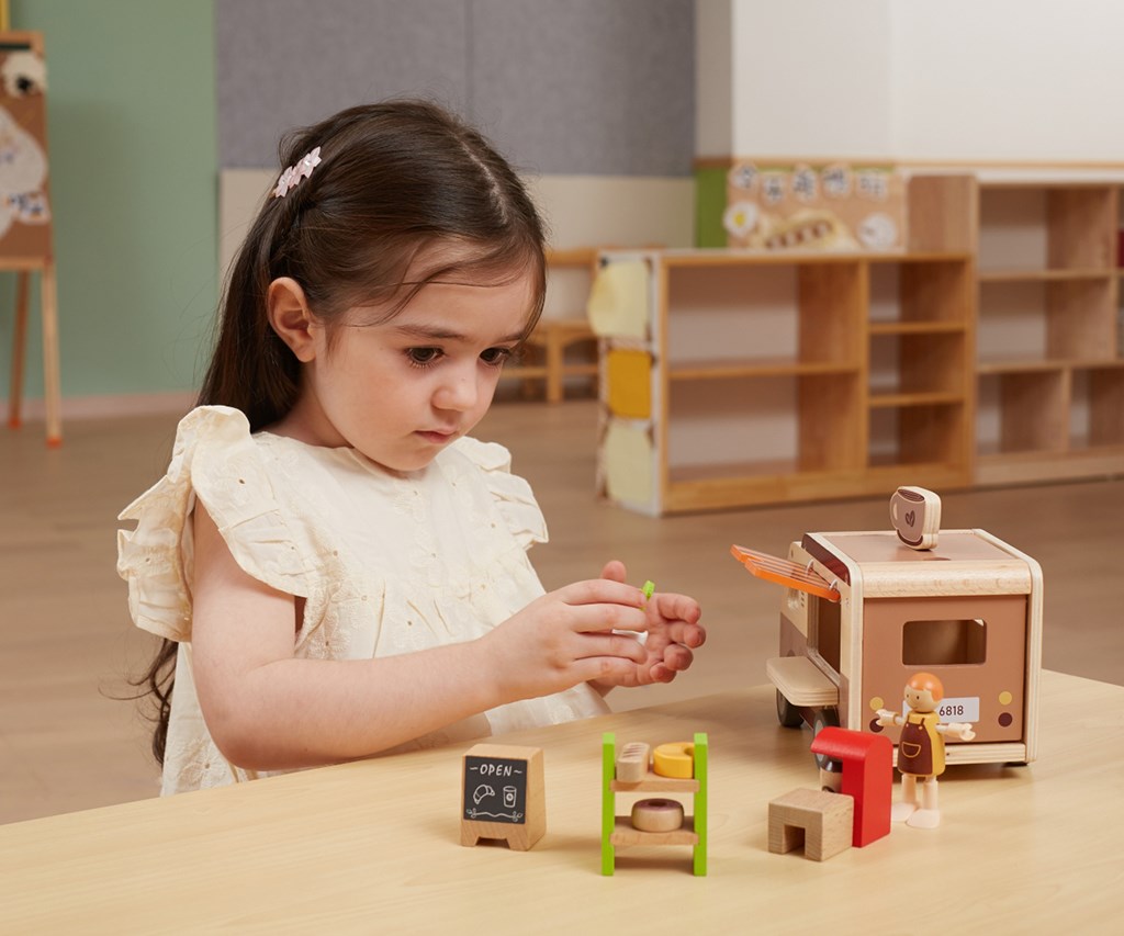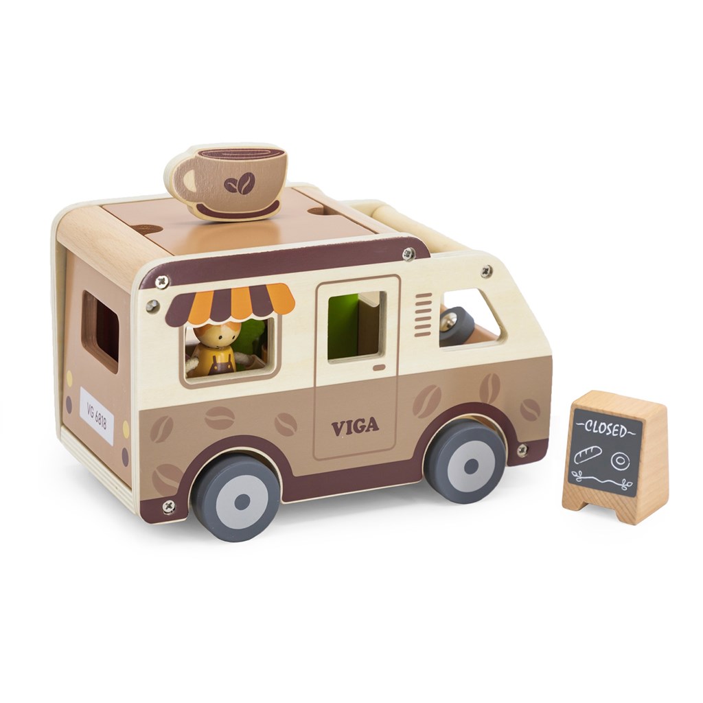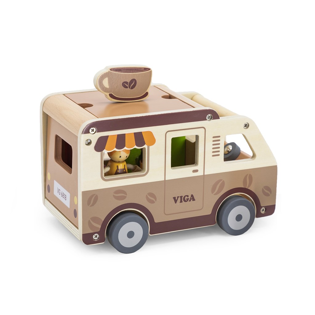 A sturdy wooden construction and carefully chosen pastel, non-toxic paints make the toy not only visually pleasing but also safe for little ones. The set is designed to stimulate imagination, manual dexterity, and social skills, while offering many hours of creative play. Perfect for children who love adventures and dream of having their own café on wheels!
