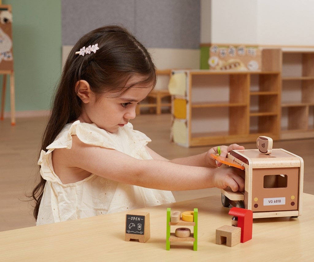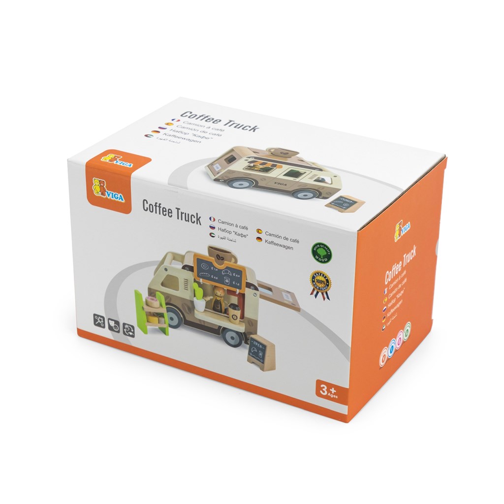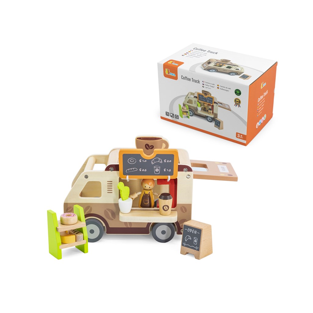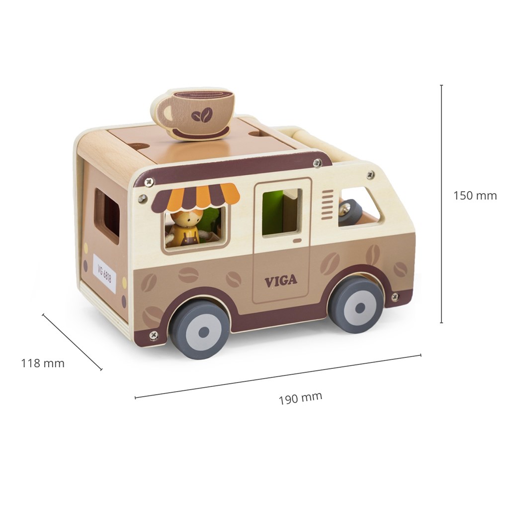 A sturdy wooden construction and carefully chosen pastel, non-toxic paints make the toy not only visually pleasing but also safe for little ones. The set is designed to stimulate imagination, manual dexterity, and social skills, while offering many hours of creative play. Perfect for children who love adventures and dream of having their own café on wheels!