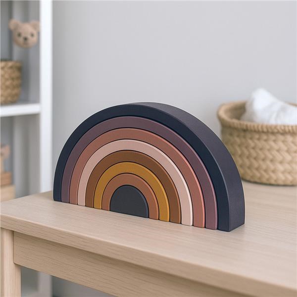 The Wooden Rainbow Brown Montessori Baby Mix offers a simple and elegant way to develop children's creativity, fine motor skills, and spatial awareness. The set of wooden arches in natural brown tones provides endless possibilities for play and learning.