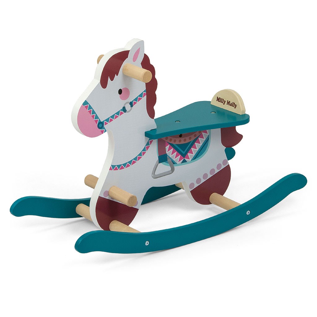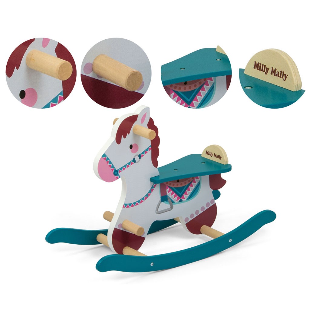 Wooden rocking horse with backrest Milly Mally Lucky 18 blue