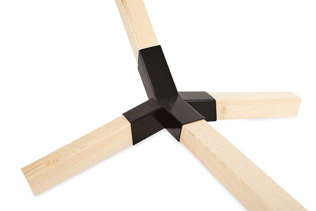 The legs are made of 70×70 mm steel profiles, powder-coated in glossy black – corrosion-resistant and visually appealing. The 65×65 mm wooden beams ensure long-lasting durability.